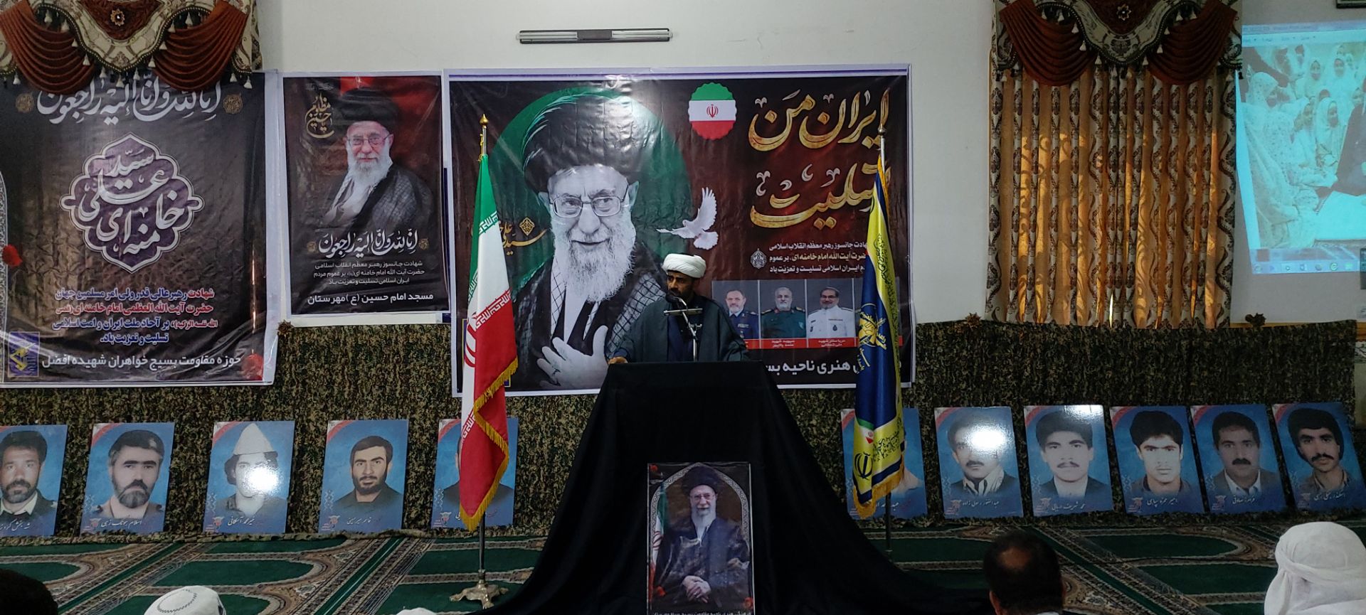 در ادامه مراسم حجت‌الاسلام والمسلمین وحید خوش رو نماینده ولی فقیه در ناحیه مقاومت بسیج مهرستان اظهار کرد: رهبر فرزانه ما نه تنها محبوب ملت خویش، بلکه اسوه و الهام‌بخش همه آزادگان و مظلومان در سراسر جهان بودند که سرانجام با شهادت در راه خدا، به آرمان دیرین خود دست یافتند. نام و مکتب ایشان در تاریخ جهان تا ابد جاودان خواهد ماند، حال وقت آن شده است که ما ادامه دهنده راه رهبر شهید جهان اسلام باشیم.